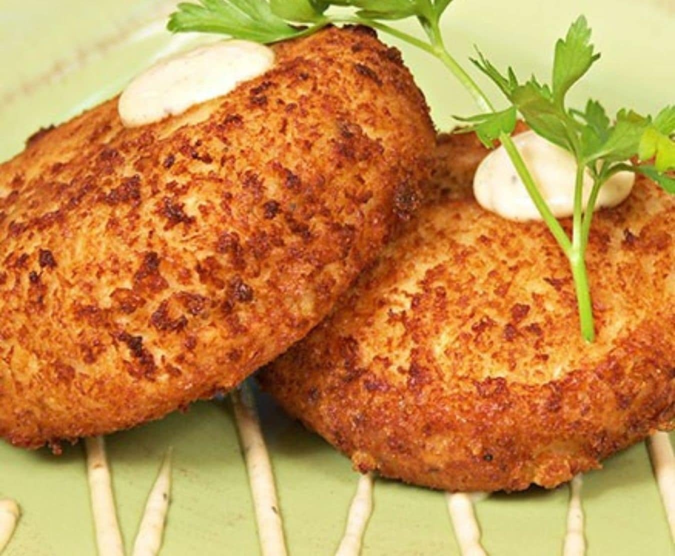 This dish is made with crabmeat and haddock, flavored with lemongrass, garlic, ginger, and cayenne pepper. The seafood is then coated in crispy panko bread crumbs, and fried until golden brown.